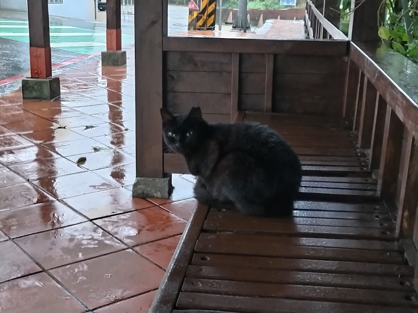 台湾の黄金博物館前のバス停に佇む黒猫ちゃん